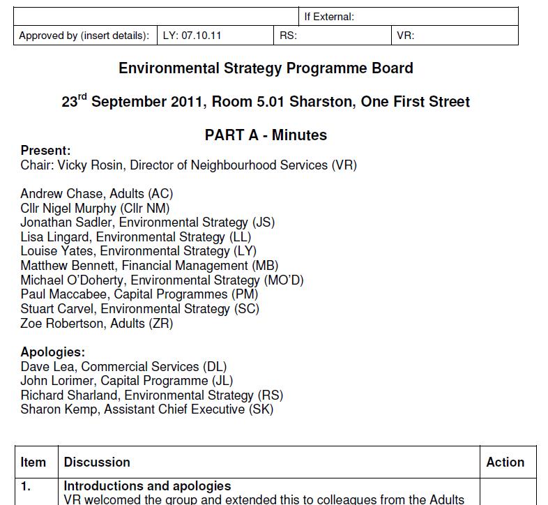 And voila, 20 working days later (well, slightly more, but who’s counting?), we have the minutes for the period requested. (ESP Board _17_ Minutes – 25.11.10, ESP Board (18) Minutes – 25.01.11, ESP Board (19) Minutes – 28.03.11, ESP Board (20) Minutes – 14.06.11, ESP Board (21) Minutes – 26.07.11, ESP Board (22) Minutes – 23.09.11)
