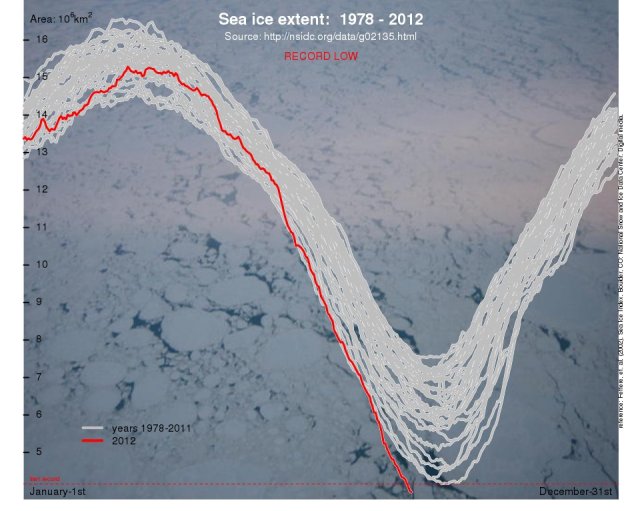 Here’s a graph of the Arctic ice melt that’s getting soooo much front page/lead story coverage in the mainstream media.