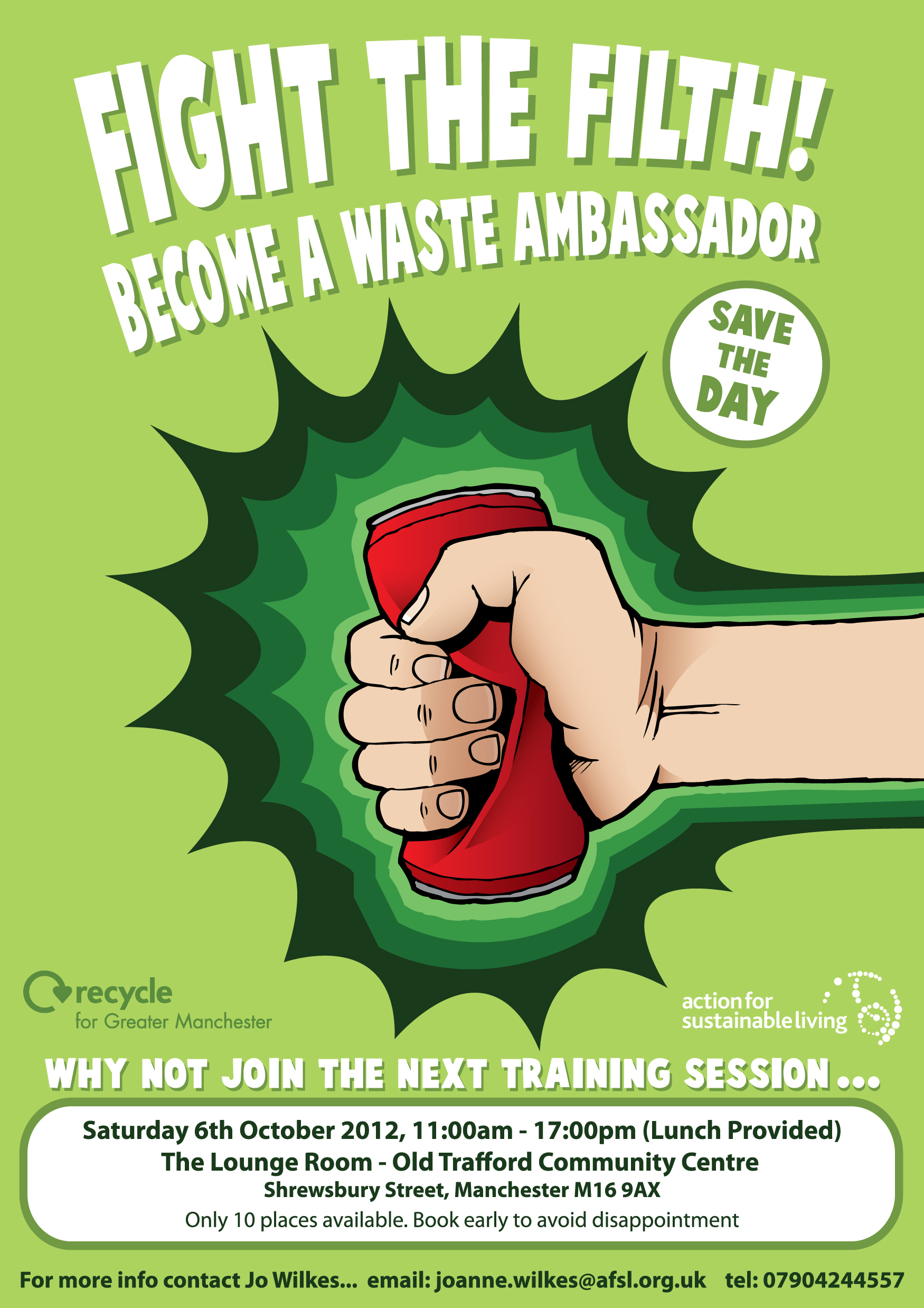 Action for Sustainable Living is currently recruiting for people from Trafford to attend free Waste Ambassador training on Saturday 6th October. There are 10 free places available for Trafford residents.