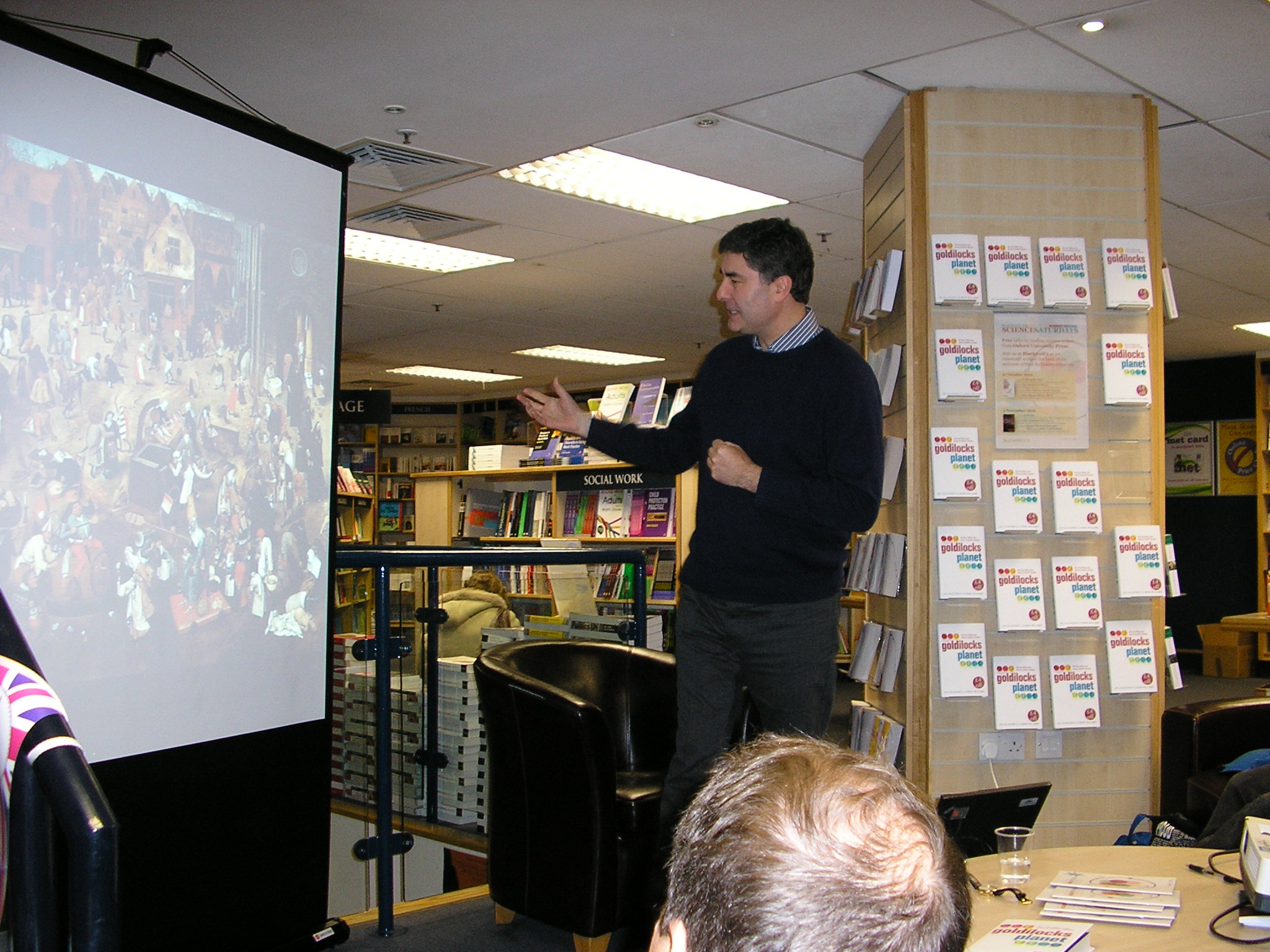 Disclaimer: MCFly has accepted a kind (and unsolicited) offer from Oxford University Press for copies of both The Goldilocks Planet and Professor Bill McGuire‘s “Waking the Giant” (Prof McGuire gave an earlier talk which, by all accounts, was even more depressing than the geologist/paleobiologist one described here).