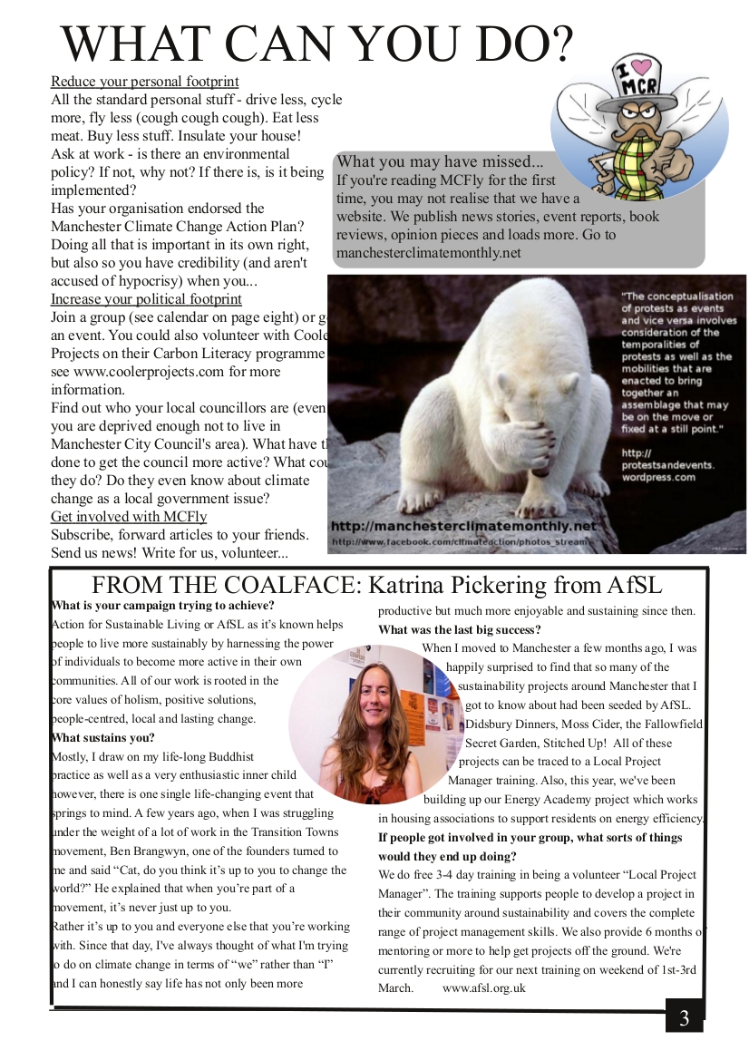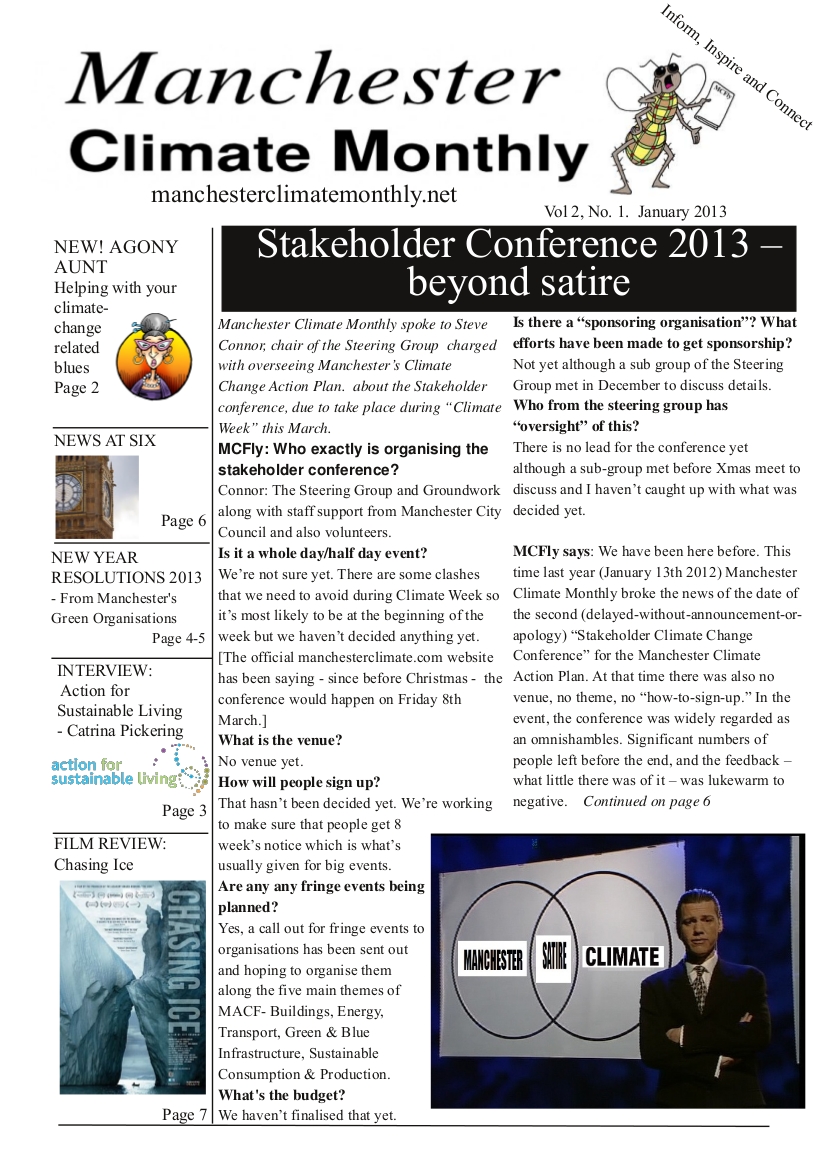 What preparations have been made for the next “Stakeholder Conference” on climate change, 9 short weeks away? What advice does MCFly’s new agony aunt, Miss Movements have to offer? What do various eco-groups like Friends of the Earth, Carbon Coop and so on have planned for the year ahead? What is “Democracy in the Making”?