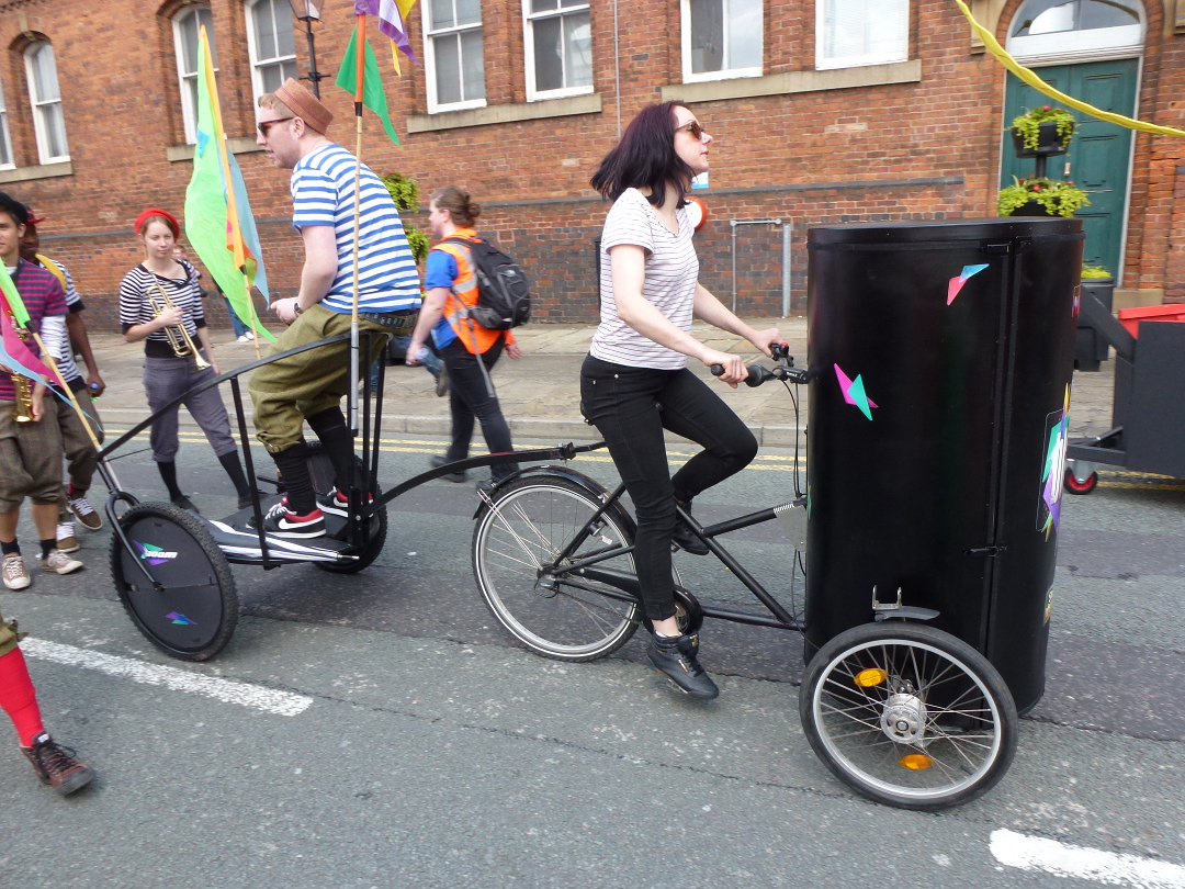 Over the weekend 18th and 19th May we will be building a giant puppet to ride the bike. We have pencilled in the mornings of both days, 10am to 1pm to build the puppet and flags for the many bikes taking part.