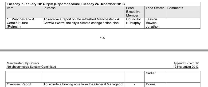 In January 2013 the Neighbourhoods Scrutiny Committee had a discussion of the “Certain Future” (Manchester Climate Change Action Plan ‘refresh’. MCFly’s editor was there, which made the conversation a little bit more robust than perhaps senior councillors were hoping for.