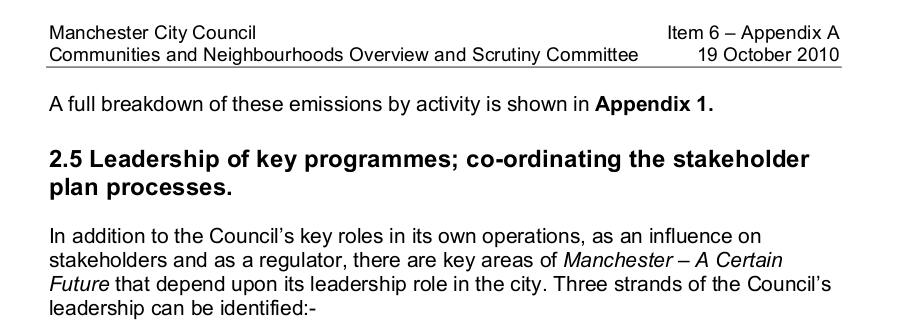 In 2009 (ahead of the climate change conference in Copenhagen), Manchester came up with a Climate Plan. And unlike many other such documents, this wasn’t concocted in the bowels of the Town Hall by policy-monkeys who’d been chained to desks and were fed biscuits in exchange for paragraphs of jargon.