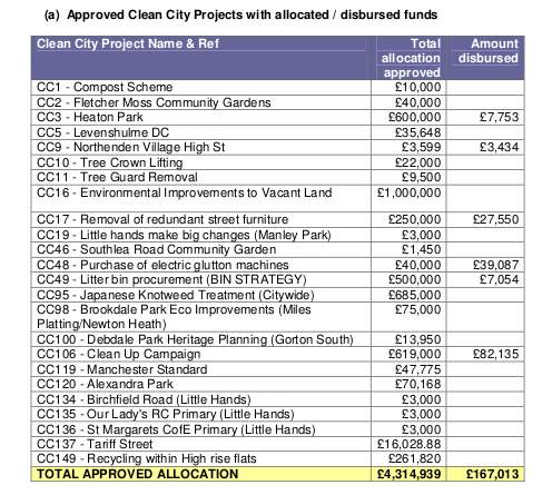 Now, if you want to know how the £14.5m is being allocated, you can ask the Executive Member for the Environment. She will probably tell you to look at this website. http://www.manchester.gov.uk/cleancity