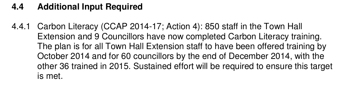 In May 2013 the Economy Scrutiny Committee recommended that “all councillors carry out the carbon literacy training in the next twelve months.”
