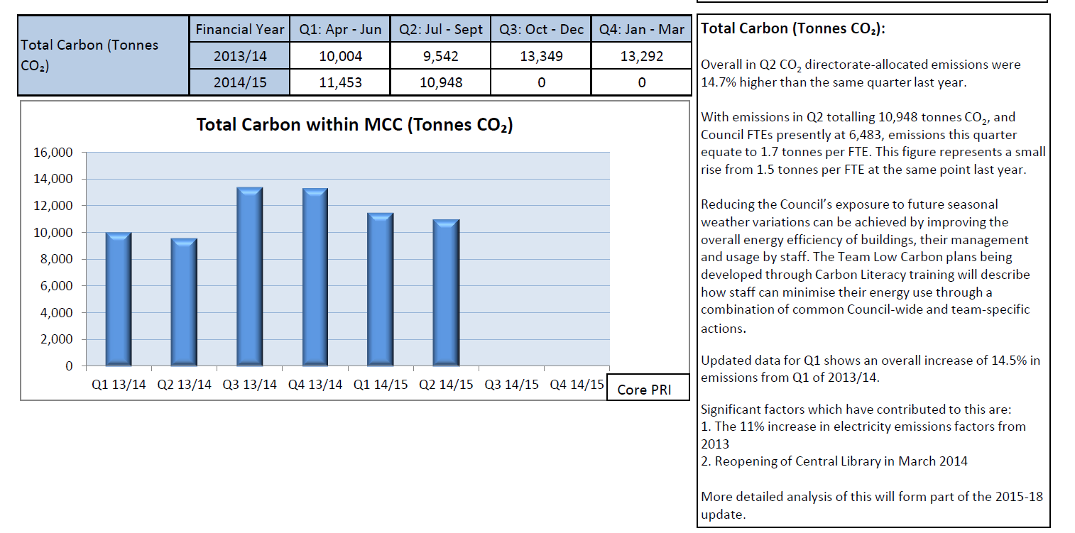 The skimpy 5 page report (4 if you take out the cover) is of course silent on many crucial items, as Manchester Climate Monthly predicted last week. How, for instance, is carbon literacy training for councillors proceeding? We don’t know. When will the first monthly “Environmental Dashboard” be presented to sit alongside the Economy and Social dashboards?