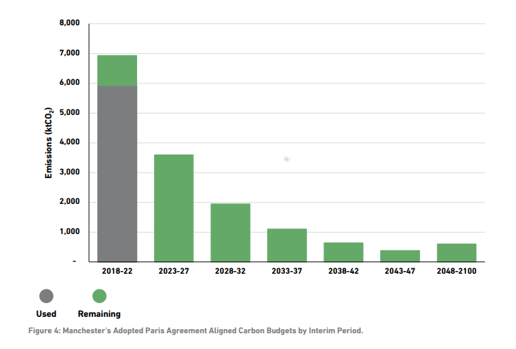 In September 2021, the statistics around Manchester missing its carbon budget were released in an appendix to a report going to the Environment and Climate Scrutiny Committee. But for a sign that said “beware of the leopard” they couldn’t have been buried any deeper. As Climate Emergency Manchester revealed at the time, they showed that the city has now burned 6 million tonnes of carbon dioxide. That’s 40%. In three years.