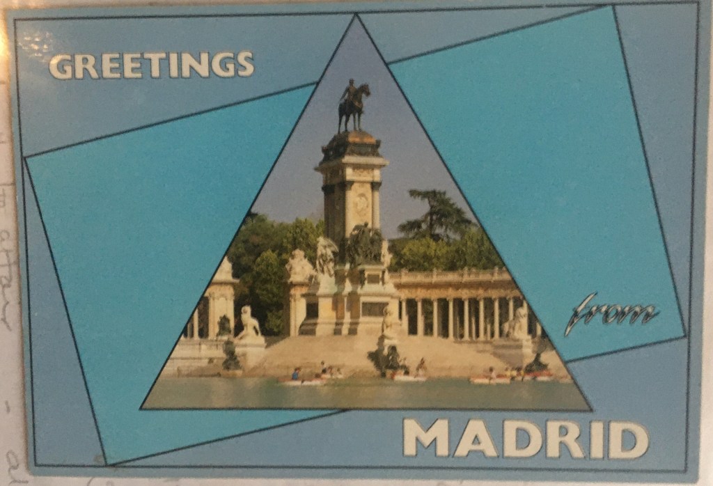 For now, one of those “mundane” items that so often are not recorded, either for lack of the existence of the artifact, or respect for its significance. A postcard (and remember, this is pre-internet times) from Madrid, from a supporter of the camp, delivered to that red letterbox the campers had put up (in homage to the M11 campaign).