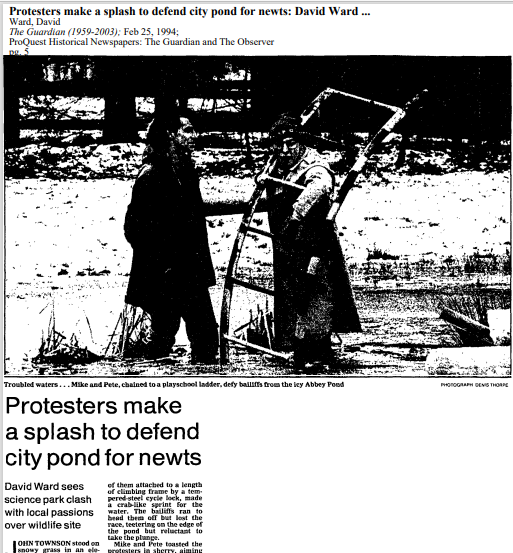Also, on Thurs 24th, the 28th anniversary of the Pond’s destruction, there is an online meeting, from 7.30pm, bringing together people who were at the Republic of Newtonia with campaigners defending green spaces now. You can book here (it’s free).