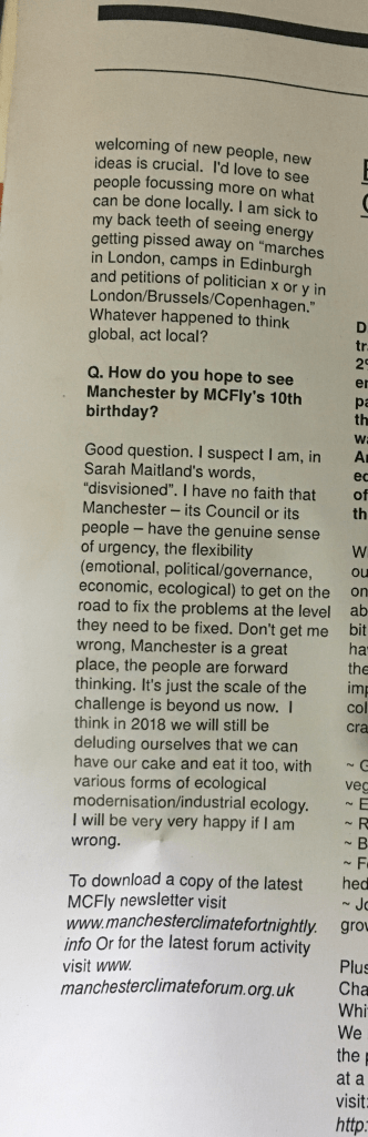 I am almost Gone From Manchester (more abt that soon). Doing a clear out, stumbled on this interview from the magazine of “Environmental Network for Manchester.” EN4M was funded by Manchester City Council, back when they still had money. It’s an interview from mid-2010, when I was… about to leave Manchester