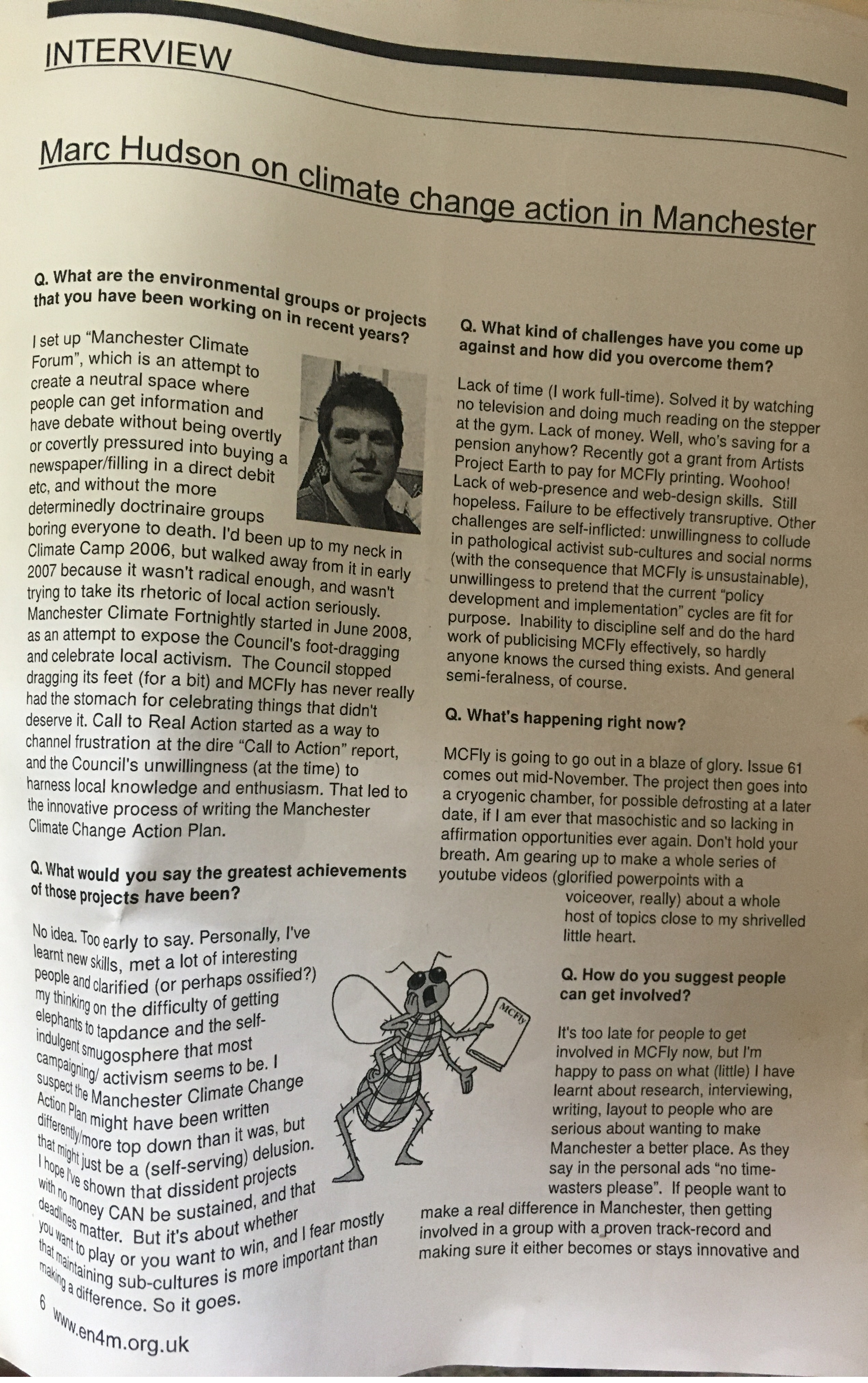 I am almost Gone From Manchester (more abt that soon). Doing a clear out, stumbled on this interview from the magazine of “Environmental Network for Manchester.” EN4M was funded by Manchester City Council, back when they still had money. It’s an interview from mid-2010, when I was… about to leave Manchester