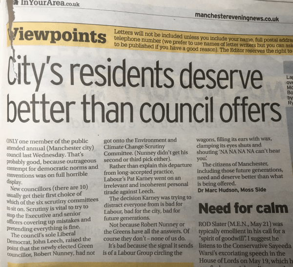 The reporting should have been titled “”Manchester Labour attacks democracy… again.”