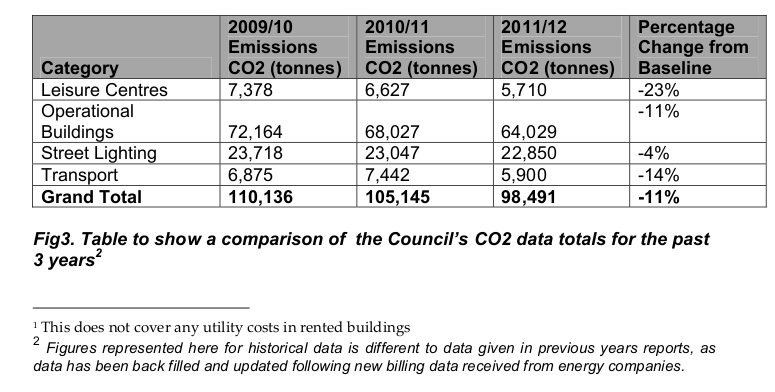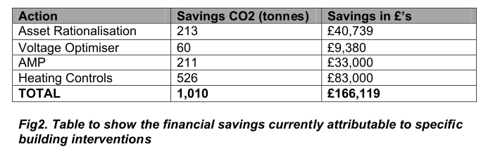 4.2.1 The Council saved 213 tonnes of CO2 in energy consumption costs through reducing the number of buildings in its operational portfolio in 2011/12. As many closures occurred towards the end of the financial year, full-year annual savings going forward for these rationalised buildings will be significantly higher, equating to 1,089 tonnes of CO2.